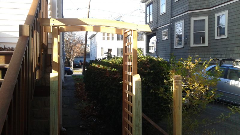 I told Allysen this would take a lot longer than we thought, and in that I was correct! For one thing, there was the little matter of putting together the arbor kit (some assembly required!) that I promised her fifteen years ago I would assemble for Mother’s Day. The arbor is part of one of the gateways for the fence, you see. A sort of portal into the backyard dimension. Well, I got that up—and I was never so glad that I’d bought a cordless nail-gun with a different project in mind. And as of today… there be a GATE!